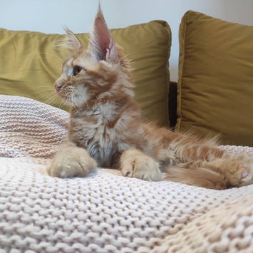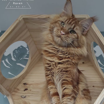 C'est en mars 2020, en même temps que l'adoption de Rakoon, que j'ai offert à ma moitié une petite princesse pour son anniversaire. Son charme et sa beauté m'ont donné envie de créer une chatterie à sa hauteur. Raven est une vraie princesse et provient d'une très belle lignée, sa maman étant White Lion Irida, triple championne Black smoke tortie et son papa, Great Tail Kristofer, triple champion Red maquerel tabby, tous deux exportés tout droit de Russie. Raven suit le même chemin que son papa, sa croissance est lente ce qui ne veut pas dire qu'elle sera petite adulte au contraire ! Sa maman fait 7 kg, très bon poids pour une femelle Maine Coon et son papa 11 kg.